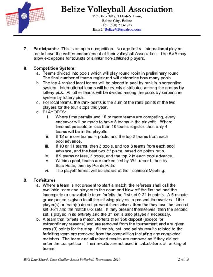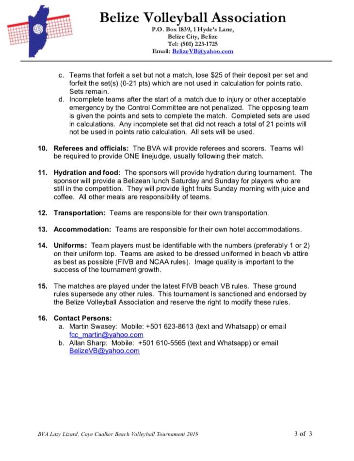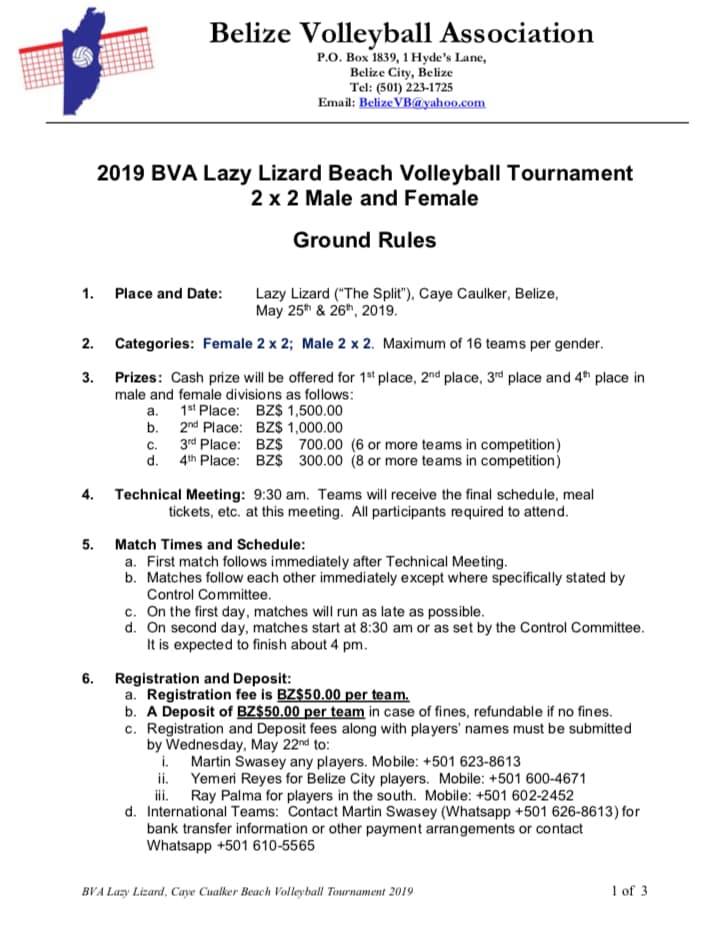 The Belize Volleyball Association thanks all its sponsors and supporters of this event. Results will be provided following the event.
