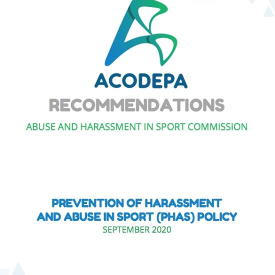 Tuesday, October 6, 2020 - ACODEPA makes recommendations for the PREVENTION OF HARASSMENT AND ABUSE IN SPORT POLICY....